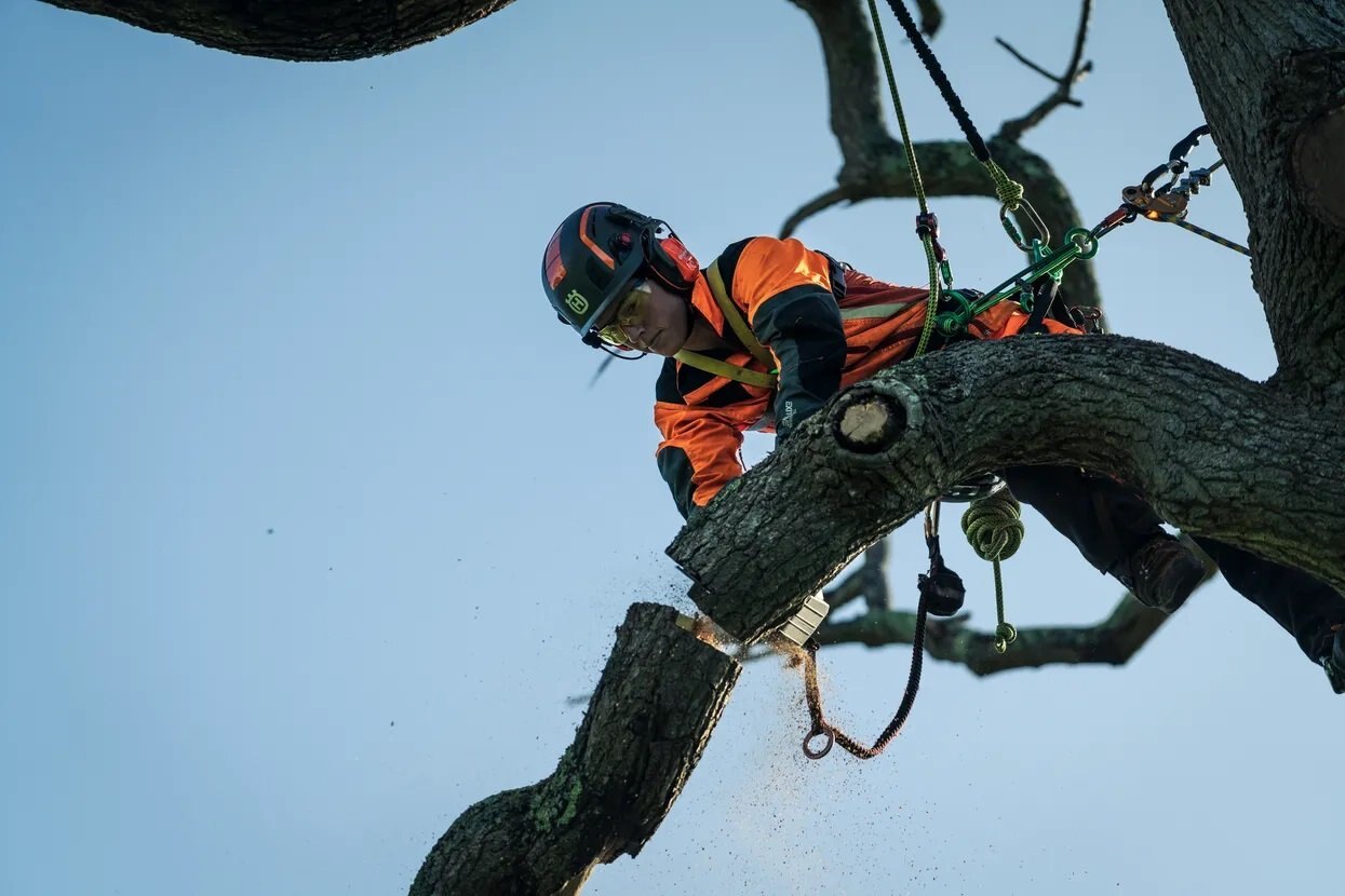 Powerful top-handle battery chainsaw for tree climbers