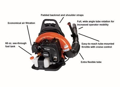 PB-580H Combines dependability and comfort with economical performance Features 517 CFM and 216 MPH performance 58.2 cc...